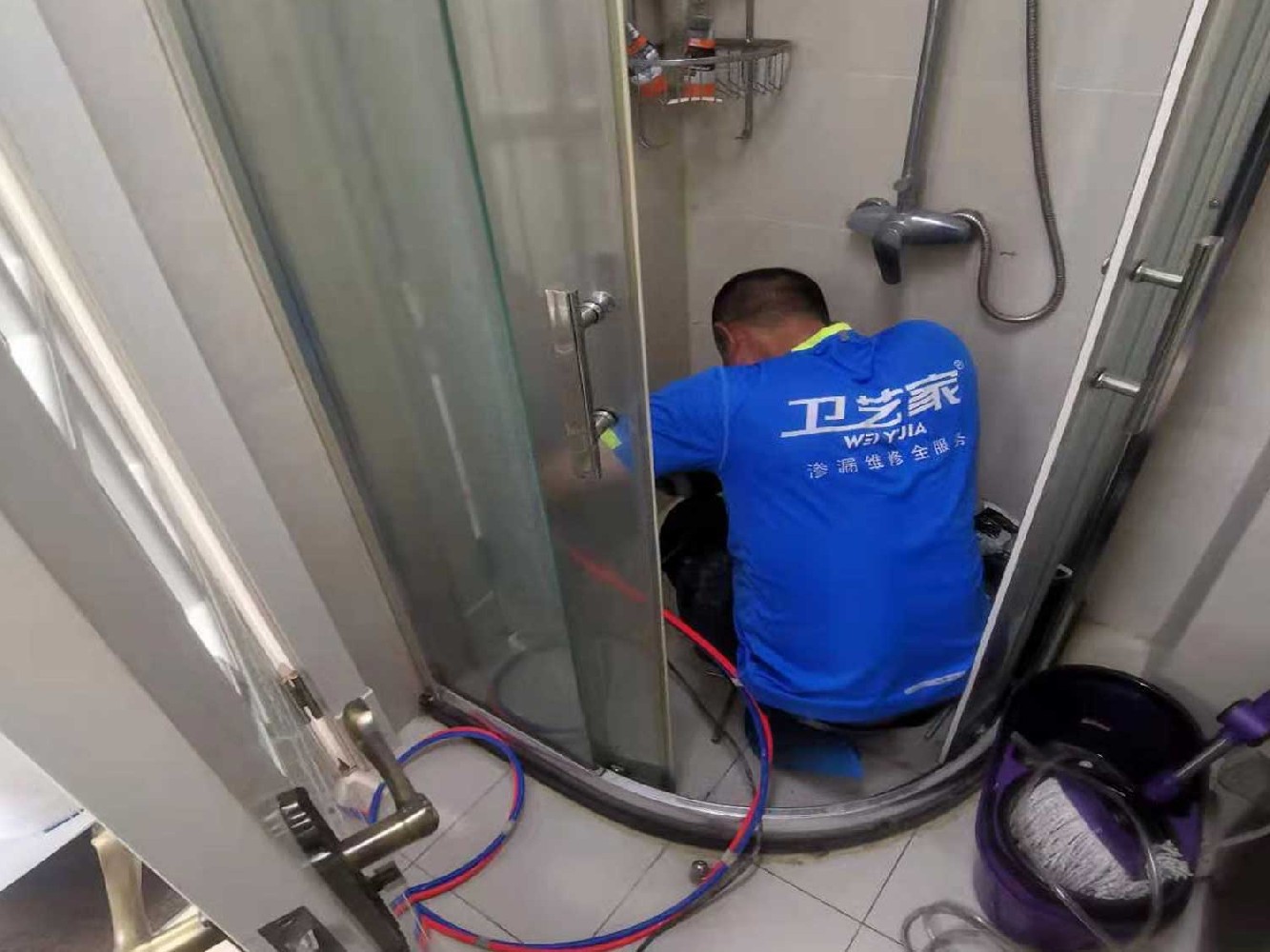 没多久,卫艺家防水师傅如约而至。他们带上专业工具,如红外线测漏仪、注水试验设备等,一到现场就直奔天井。师傅们先细致检查天井顶部的防水层,发现多处已老化、开裂,防水功能大打折扣;接着查看排水系统,发现排水口被杂物堵塞,排水管道也有破裂,导致雨水积聚后渗漏;还注意到天井周边墙体存在渗水痕迹,推测可能是砌体有细微裂缝。